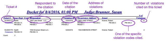 - As it seems Property Violation Docket records are often generated weekly, it’s unclear as to whether the time periods that are missing are accidental/on purpose OR if there were not hearings conducted during those missing weeks.